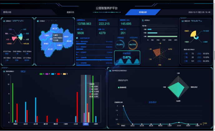 大數據可視化中心系統概述 實現靜態與動態數據的實時直觀展示,提供給各級領導進行監督指揮數據支撐,推進數據可視化(各級部門管轄內容明細、路長制人員統計、日常工作情況匯總、項目工程統計等),為領導層...